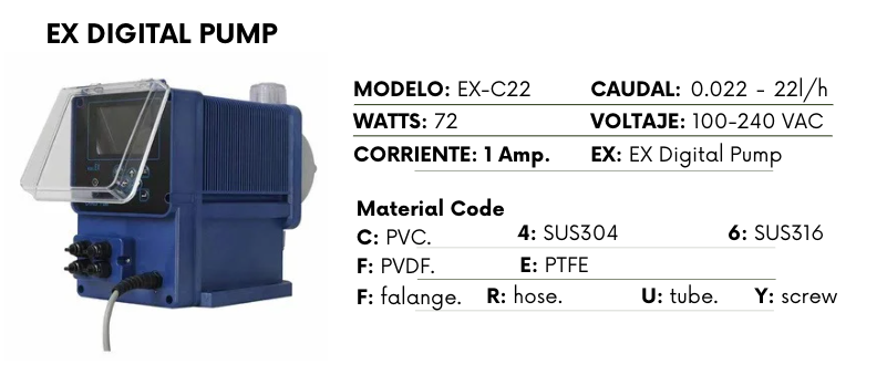 Cuando se usa en combinación con un medidor de flujo o medidor de agua de contacto, la bomba EX administra el medicamento en proporción al caudal.